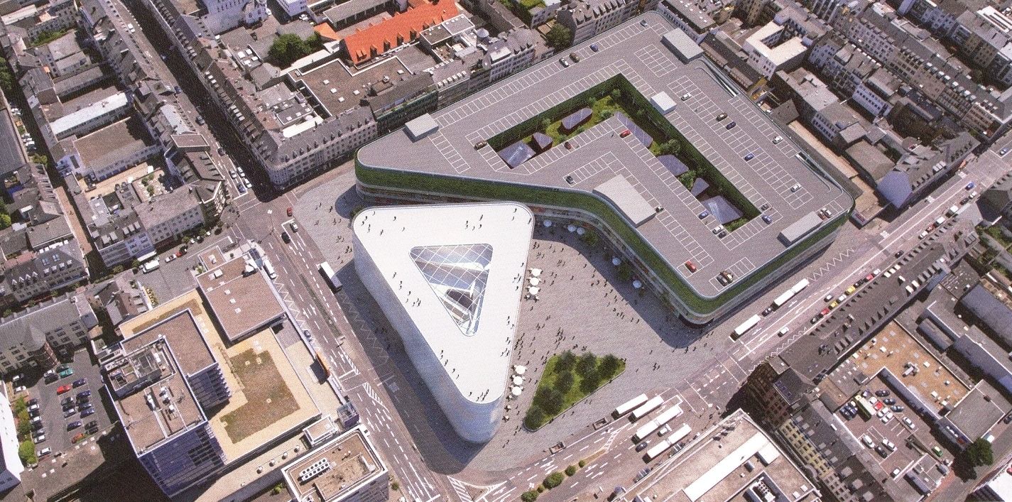 Dank seinem dreieckigen Grundriss und den sechs Geschossen fügt sich der Kulturriese