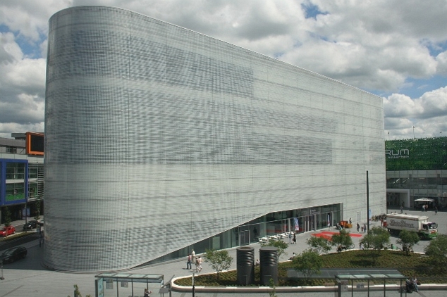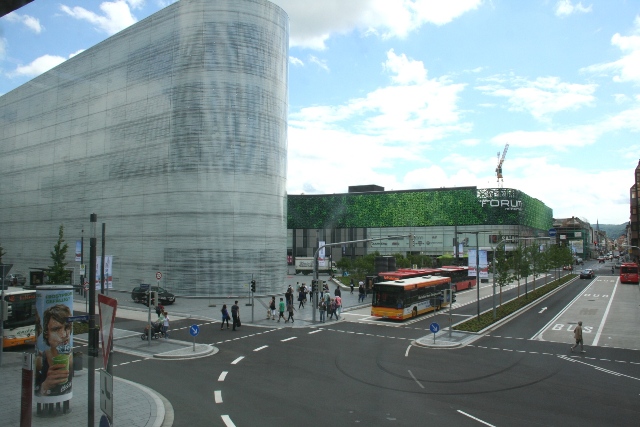 Kultur- und Einkaufszentrum und verbirgt, was hinter der Kurve kommt, nämlich der