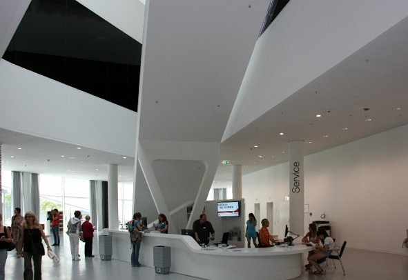 thek den Besucher mit ihren Auftaktbereichen. Ein dreißig Meter hohes Atrium nimmt